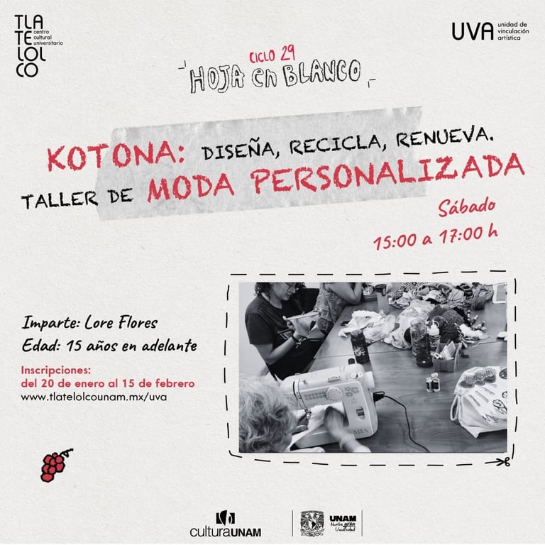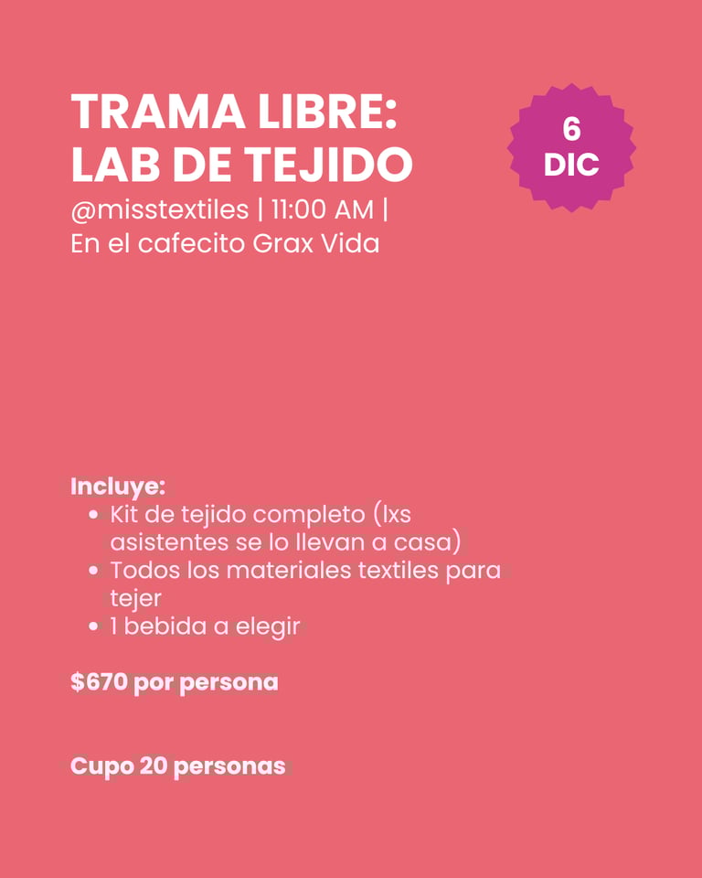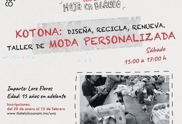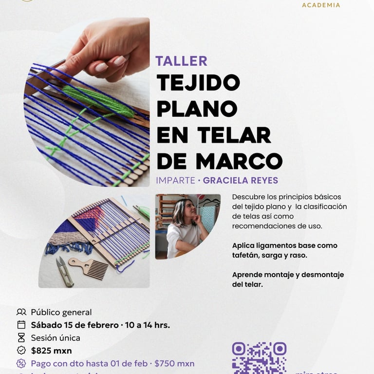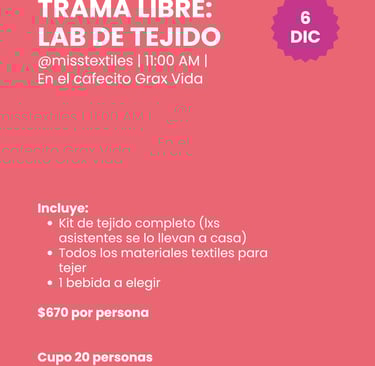 Talleres para público en general, jóvenes y adultos sin experiencia previa que tengan el interés por conocer más sobre el universo textil.