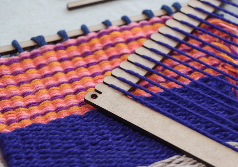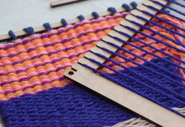 Aprende a hacer tu propio marco de tejido plano y usa materiales textiles diversos para tejer los ligamentos básicos.
